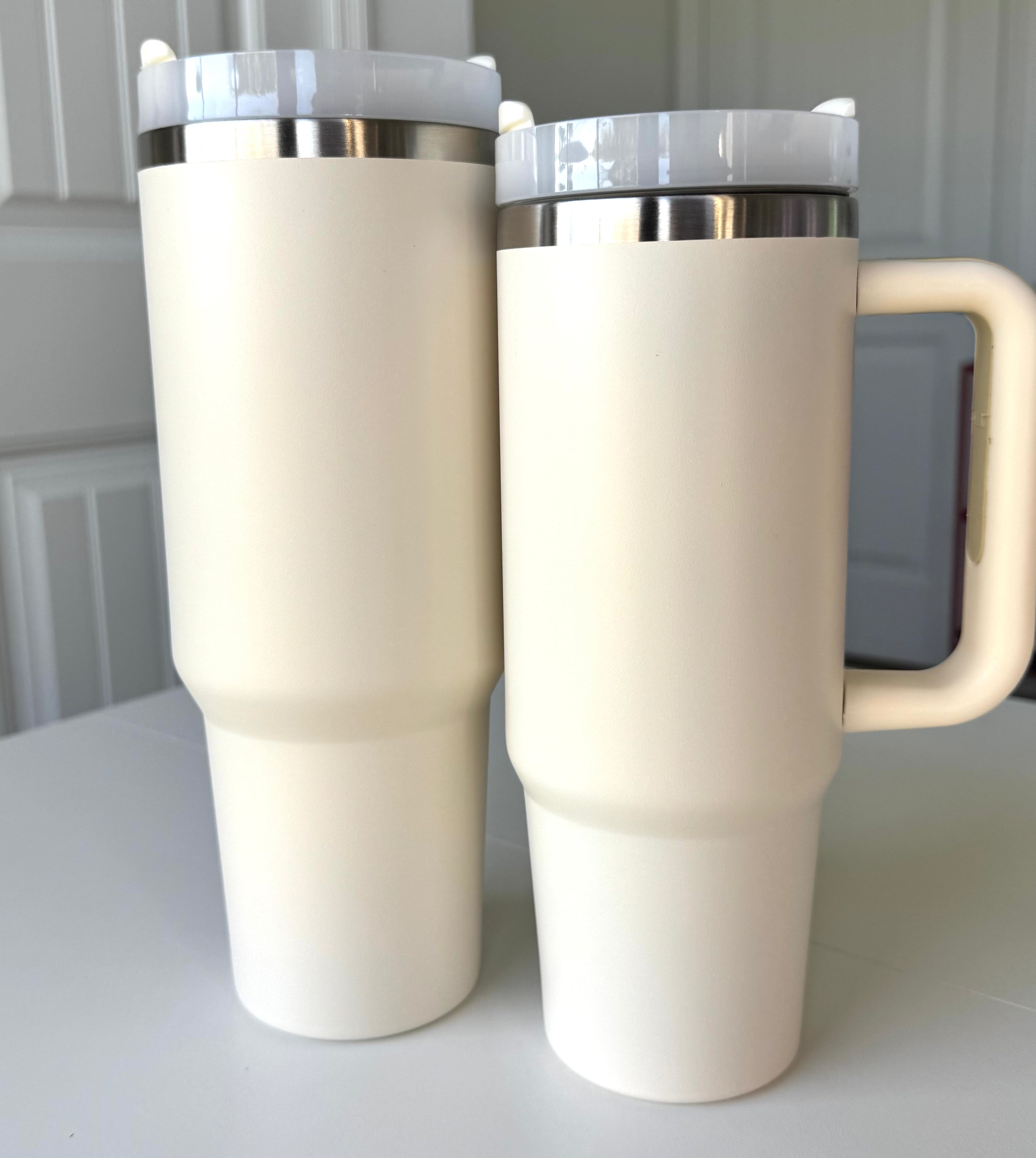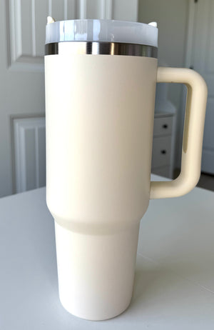 30oz Insulated travel tumbler with handle / Ivory