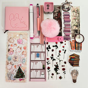 This curated box includes a notebook, pens and pencils, highlighters, trendy sharpener, washi tape, fluffy keychain and several sticker sheets with cozy books, animals and florals – everything to decorate reading journals, planners and study notes.  Each Reading Stationery Gift Box is hand‑packed in a pretty gift box, ready to give for birthdays, holidays, back to school or just because.